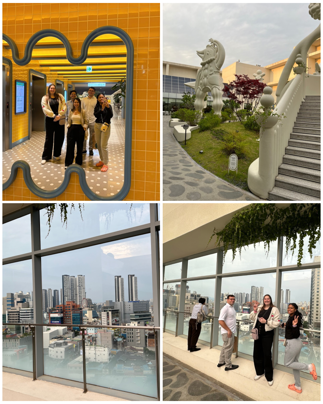 When we reached the top floor I quickly clocked the small outdoor garden with cool statues, and we headed straight outside. The weather was nice and the view was gorgeous. At the back we found a huge window with a great view of the city. We decided to take a seat to rest. We sat there and chatted for hours while the sun went down on our first week in Daegu. I can’t help but smile when I think about our first outing as a group.